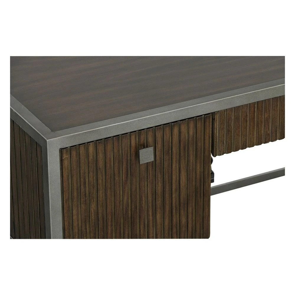Feature Bullets: Features four soft close drawers. One pencil tray and hidden storage compartment. Finished in Tahitian Pearl with Black Steel accents.