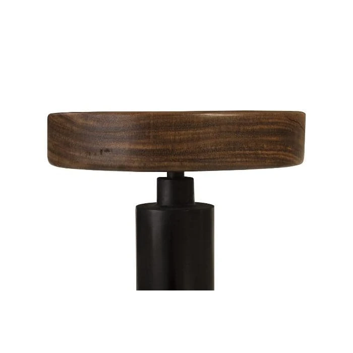 The marriage of black metal and beautiful natural wood lend itself in this bar stool design to create a modern organic piece. Crafted from responsibly harvested Chamcha wood, an acacia species native to Thailand.